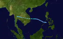 | Ira | October 1 – 3 | Tropical storm | 65 km/h (40 mph) | 996 hPa (29.41 inHg) | Vietnam, Cambodia, Thailand, Myanmar | None | 24 | |