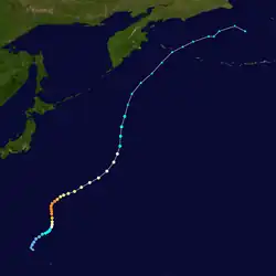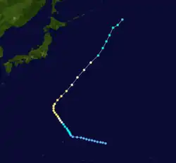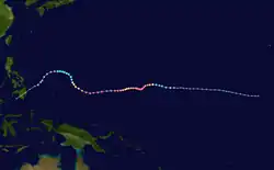 | Russ | December 13 – 23 | Very strong typhoon | 185 km/h (115 mph) | 915 hPa (27.02 inHg) | Marshall Islands, Mariana Islands, Caroline Islands | $120 million | None | |
