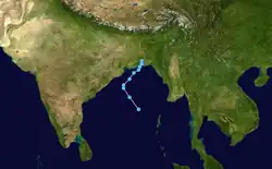 The final storm of the season, which formed in the eastern Bay of Bengal on November 9, hit eastern India as a 45 mph tropical storm on the 15th. It dissipated the next day over the country.