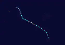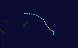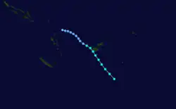 Developed in the Australian region of the Coral Sea far offshore from Queensland. The cyclone intensified to a Category 3 severe tropical cyclone (Australian intensity scale) before crossing into the South Pacific region where it passed to the southwest of New Caledonia.[17]