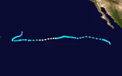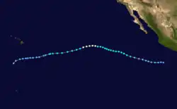 The 1992 Pacific hurricane season was the most active Pacific hurricane season on record, featuring 27 named storms. The season also produced the second-highest ACE value on record in the basin, only surpassed by the 2018 season. The 1992 season officially started on May 15 in the eastern Pacific, and on June 1 in the central Pacific, and lasted until November 30. These dates conventionally delimit the period of each year when most tropical cyclones form in the northeastern Pacific Ocean.[1] However, tropical cyclogenesis is possible at any time of the year, as demonstrated by the development of Hurricane Ekeka on January 28, and Tropical Storm Hali two months later.