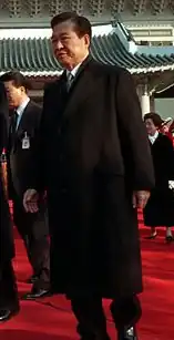 The government declared all strike action illegal and coordinated with business leaders to attempt to break the strike by using replacement workers and threats of reprisal.[7] On January 6, the government threatened to arrest at least 20 union officials.[11] On January 16, riot police fired tear gas at thousands of workers marching toward Myongdong Cathedral. As a result, Kwon Young Kil, the strike's leader, announced on January 18 that the KCTU would strike only on Wednesdays until February 18, when they would resume all-out strikes if the government didn't cancel the law. They would also hold mass protests every Saturday. Later that day, police tangled with thousands of workers and student supporters trying to reach union leaders.[10] On January 20, the president agreed to meet opposition leaders to try to resolve unrest as tens of thousands of union members returned to work. Hundreds of students battled police with firebombs, rocks and tear gas after a union leader urged an end to violence.[12] Actions undertaken by President Kim and his government eventually proved to undermine him, as it turned both international and domestic favor against him. He and the NKP both suffered major dips in approval ratings as a result of these actions. The government threatened union leaders with the National Security Law – if they were found guilty of working with the socialist North, they would be subject to heavy penalties with very little proof of their guilt. These accusations became a major negotiating point as it caused distrust between any of these leaders and the government, which made any kind of negotiating difficult.[10]
