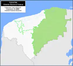 - Between 1996 and 2022, Yucatán had five federal electoral districts. Under the 2017 scheme, the first district's head town was at Valladolid and it covered 35 municipalities in the east of the state:[12][11]