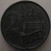 The 2+1⁄2-cent coin minted in the Netherlands during World War II was made of zinc, and worth 1⁄40, or .025, of the Dutch guilder. It was designed by Nico de Haas, a Dutch national-socialist, and struck in 1941 and 1942.