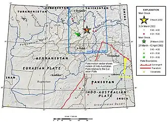 19. ^ TNH (7 March 2002). "Tajikistan: Earthquake update". ReliefWeb. Retrieved 29 April 2025.