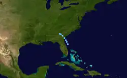 84. ^ Richard D. Knabb & James L. Franklin (September 9, 2003). "Tropical Depression Fourteen Discussion Number Three". National Hurricane Center. Archived from the original on February 13, 2015. Retrieved February 25, 2021.
