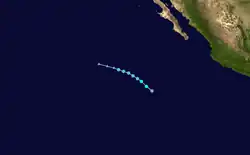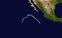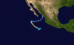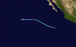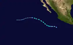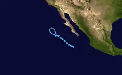 The 2003 Pacific hurricane season was the first season to feature no major hurricanes (storms of Category 3 intensity or higher on the Saffir–Simpson hurricane wind scale) since 1977. The season officially began on May 15, 2003 in the Eastern North Pacific (east of 140°W), and on June 1 in the Central (between 140°W and the International Date Line); both ended on November 30. These dates, adopted by convention, historically describe the period in each year when most tropical cyclogenesis occurs in these regions of the Pacific.[1] The season featured 16 tropical storms, 7 of which intensified into hurricanes, which was then considered an average season. Damage across the basin reached US$129 million, and 23 people were killed by the storms.[nb 1]