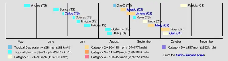 Hurricane Olaf (2003)Hurricane Marty (2003)Hurricane Jimena (2003)Hurricane Ignacio (2003)Tropical Storm Carlos (2003)Saffir–Simpson scale