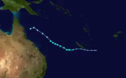 | Oscar | 21–27 March | Category 4 severe tropical cyclone | 165 km/h (105 mph) | 940 hPa (27.76 inHg) | None | None | None | |