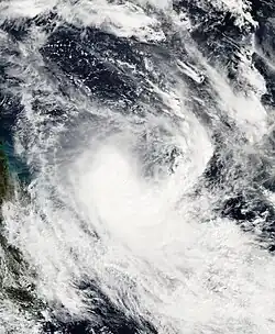 During 20 December, Tropical Disturbance 02F was last noted by the FMS, as it moved into the region from the South Pacific basin about 665 km (415 mi) to the northwest of Honiara in the Solomon Islands.[8] Tropical Disturbance 04F was first noted by the FMS within a broad area of low pressure during 29 December, while it was located on the border with the South Pacific basin, about 100 km (60 mi) to the south of Honiara in the Solomon Islands.[9] The system was located in a moderate area of vertical windshear and was poorly organised with atmospheric convection confined to the system's eastern semicircle.[9] The system subsequently moved south-eastwards and remained poorly organised, before it was last noted by the FMS later that day while it was located to the south of San Cristobal Island.[10]