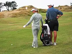 Annika Sörenstam with caddie Terry McNamara on the 10th hole during the Pro-Am