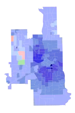 ![]() Precinct results Ellison: 30–40% 40–50% 50–60% 60–70% 70–80% 80–90% >90% Fine: 30–40% 40–50% Lee: 30–40% | |||||||||||||||||||||