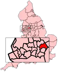 The Metropolitan Borough of Oldham shown within England.