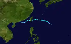 Heavy rainfall in Taiwan caused flooding and four minor injuries. Rain also fell heavily in the northern Philippines.[25] The storm has also killed at least 32 people in China, while another 60 people are missing. Agricultural losses in Taiwan amounted to NT$73 million (US$2.2 million).[26] Total damages from the storm amounted to $450 million.