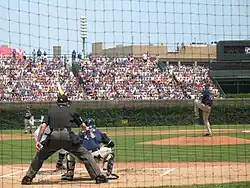 Chris Young pitching against the Cubs at Wrigley Field on June 16; he was working on a no-hitter but was later ejected from the game after he and Derrek Lee got into a fight that turned into a bench-clearing altercation.