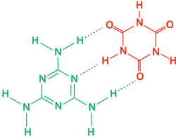 - ^ E.E. Simanek, X. Li, I.S. Choi, G.M. Whitesides, "Cyanuric Acid and Melamine: A Platform for the Construction of Soluble Aggregates and Crystalline Materials", Comprehensive supramolecular chemistry, J.L. Atwood ed., New York:Pergamon, Vol.9, 495 (1996).