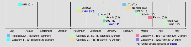 | Guba | 13–19 November | Category 3 tropical cyclone | 140 km/h (87 mph) | 970 hPa (28.64 inHg) | Papua New Guinea, Queensland | $71.4 million | 149 | |