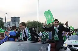 André Lenz (left) and Jan Šimůnek (right) in the victory parade following Wolfsburg's title-winning season, 2009