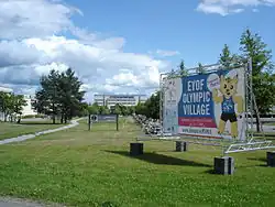 EYOF olympic village at Tampere University of Technology Campus in 2009. The mascot can be seen on the billboard.