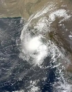 Cyclonic Storm Phyan developed as a tropical disturbance to the southwest of Colombo in Sri Lanka late on November 4. Over the next couple of days the disturbance gradually developed before weakening as it made landfall on Southern India on November 7. After the disturbance had emerged into the Arabian Sea late on November 8 it rapidly became more marked with the India Meteorological Department (IMD) reporting early on November 9 that the disturbance had intensified into a Depression and designated it as Depression ARB 03 whilst the Joint Typhoon Warning Center (JTWC) issued a Tropical Cyclone Formation Alert. Later that day the JTWC designated the system as Cyclone 04A. During the next day as the Depression turned towards the northeast, the IMD reported that it had intensified into a Cyclonic Storm and named it Phyan. Chandwad in Maharashtra recorded 240 mm of rainfall in 48 hours between 11 and 12 November. The maximum winds of 68 km/h were reported in Pune at the time of landfall. However the coastal areas recorded 75 km/h winds. Seven persons died and about 44 fishermen were missing due to the cyclone.[14]