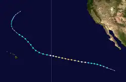- ^ a b c National Hurricane Center; Hurricane Research Division; Central Pacific Hurricane Center (April 26, 2024). "The Northeast and North Central Pacific hurricane database 1949–2023". United States National Oceanic and Atmospheric Administration's National Weather Service. Archived from the original on May 29, 2024. A guide on how to read the database is available here.