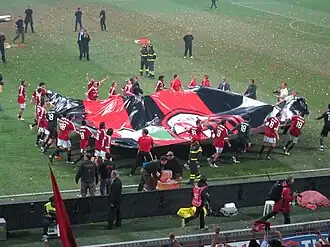 Three days after playing the first leg of the Coppa Italia semi-finals, Milan claimed a fourth-straight win in the league on Saturday, 23 April. The Rossoneri defeated Brescia 1–0 at the Stadio Rigamonti with a late goal by Robinho, despite the hosts creating several dangerous chances throughout the second half.[66] Since second-placed Napoli lost their game that same day and dropped to third behind Inter, Milan's lead was extended to eight points, with four games to play.[67] Milan then seized their fifth win in a row by defeating Bologna 1–0 at home on Sunday, 1 May. The lone goal of the match was scored by Mathieu Flamini in the eighth minute: the Frenchman received a through ball inside the box and after having his first shot saved by the opponent goalkeeper, he managed to score off the rebound.[68]