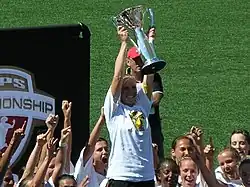 FC Gold Pride raise the 2010 WPS Championship trophy