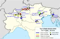The 2010 Giro d'Italia Femminile or 2010 Giro Donne was the 21st running of the Giro d'Italia Femminile, one of the premier events of the women's road cycling calendar. It was held over ten stages from 2–11 July 2010, starting in Muggia and finishing in Monza.[1] It was won by Mara Abbott of USA National Team, the first American ever to win the Giro Donne.