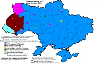 The 2010 Ukrainian local elections took place on 31 October 2010,[1] two years before the 2012 general election. The voter turnout across Ukraine was about 50%, which is considered low in comparison to previous elections.[2]