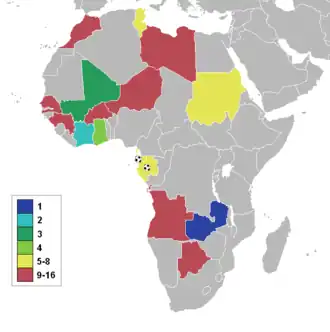 - Gabon / Equatorial Guinea (selected as hosts for 2012)