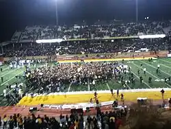 Fans storm Kidd Brewer Stadium after defeating the Furman Paladins and securing a share of the Southern Conference football championship