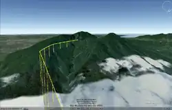 ![]() The eastern face of Mount Salak, showing the point (right) where the jet impacted the slope | |