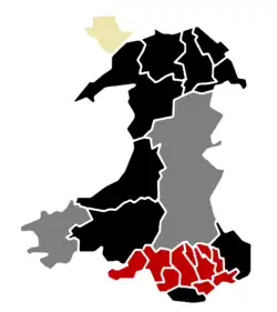 - ^ Excludes Anglesey in vote and seat data. See individual detailed articles below for the breakdown; this is a summary of the overall result.