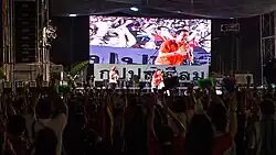 The protests had been peaceful[70] before short violent clashes on 30 November and 1 December 2013.[71] On the night of 1 December, violence erupted between anti-government Ramkhamhaeng University students and Red Shirt government supporters near Rajamangala Stadium. University students attacked a taxi containing a red shirt supporter. Gunshots were fired at the students, resulting in four deaths and more than fifty people wounded.[71][72] The gunman was identified by an eyewitness as a Red Shirt protester, while PDRC core member Sathit Wongnongtoey claimed that "police officers had taken off their uniforms and donned red shirts to attack Ramkhamhaeng students in front of the university".[73] UDD leaders subsequently ended their rally the following morning.[74]