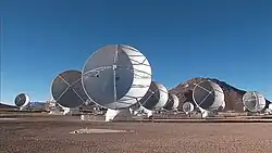 13 March 2013: the Atacama Large Millimeter Array (antennae pictured) becomes operational in Chile. At the time, it is the world's most powerful radio telescope.
