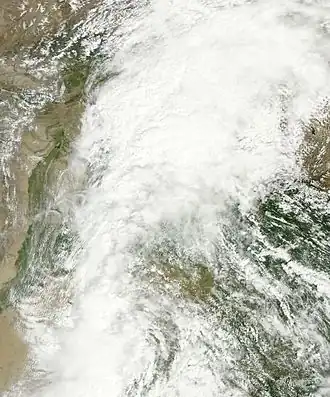 The strongest post monsoon storm ever recorded in Pakistan's recorded history took place on 3 September on a very low pressure system which started to affect parts of Jammu and Kashmir and northeast Pakistani districts of Sialkot, Lahore, Narowal, Mandi Bahauddin, Gujranwala, Hafizabad and Sheikhupura.[13] By fourth, the rains became more widespread as the northern Punjab, Pakistan, Azad Kashmir and Khyber Pakhtunkhwa including the twin cities of Rawalpindi/Islamabad, Mangla, Rawalakot, Kotli and Jhelum. The heaviest amounts of rainfall however were recorded on 4 and 5 September as several weather stations broke their 24-hour, 48-hour and total monthly rainfall records for the month of September.