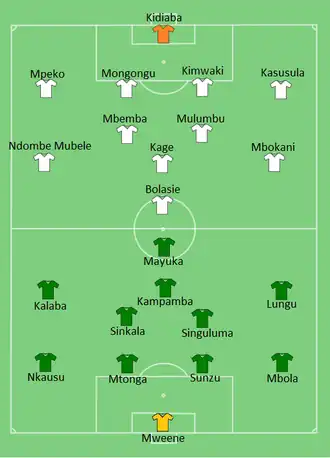 Zambia opened the scoring inside two minutes, as Chisamba Lungu controlled Robert Kidiaba's punch outside the area, allowing Given Singuluma to score with his right foot. Yannick Bolasie equalized for DR Congo in the 66th minute, as he shot home from inside the penalty area from Cedrick Mabwati's pass.[2][3]