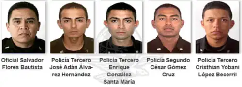 On 9 June 2015, the PGR arrested four municipal policemen for their alleged participation in the ambush: Raúl Romero Ramírez; David Vázquez Estévez; José Guadalupe Echavarría Arcos; and Jonnathan Alejandro González González.[103] According to investigators, the policemen were working for the CJNG. Authorities confirmed that the arrest was a result of intelligence sharing between the PGR and the PF.[104] Three of the officers were arrested in Jalisco,[105] while one of them was arrested in Puebla after he attempted to escape.[106] They were charged with involvement in organized crime and homicide.[106] The CNS confirmed that additional public servants from Ocotlán were being investigated and had pending arrest warrants.[105] A former municipal police officer, Abraham Pérez Murguía,[107] was arrested about a year later in Ocotlán for his alleged participation in the attack and his involvement in organized crime.[108][109] After his arrest, the officer confirmed that he worked for the CJNG and was involved in the ambush.[110][111]