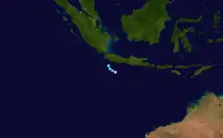 On 16 December, TCWC Perth mentioned that a tropical low may develop northwest of Christmas Island.[8] The agency declared to be a tropical low by the next day when it was producing convection in its area.[9] On 20 December, TCWC Jakarta issued an advisory as the low was inside their area of responsibility, as it was located about 567 km (352 mi) south-southwest of Tanjung Karang.[10] TCWC Perth forecast the low would intensify to a tropical cyclone and move into the Western Region by 24 hours on 21 December.[11] The low was later designated as 04U on 23 December, however, this was the last advisory issued by TCWC Perth and rapidly dissipated overnight.[12][13]
