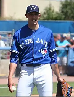 On March 23, Marcus Stroman was named the Opening Day starter for the Blue Jays.[57] The competition for fifth starter ended on March 28, when John Gibbons announced that Aaron Sanchez had earned the final rotation spot.[58] Steve Delabar, who had been an All-Star for the Blue Jays in 2013, was released on March 29, along with Randy Choate.[59] The final roles left to be determined were the fourth outfielder, closer, and remainder of the bullpen pitchers. On March 30, John Gibbons announced that Ezequiel Carrera would be the fourth outfielder, Roberto Osuna would begin the season in the closer's role, and Arnold León, Joe Biagini, and Ryan Tepera would round out the bullpen positions. Gibbons also announced that Marco Estrada and Aaron Loup would open the season on the disabled list.[60] To close spring training, the Blue Jays returned to Montreal's Olympic Stadium for a two-game series against the Red Sox.