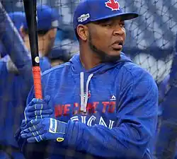 On February 6, it was announced that Chavez had won his arbitration case, and will receive a $4 million salary for the season.[32] In addition, Gavin Floyd signed a one-year, $1 million contract with the Blue Jays, and Chad Jenkins was designated for assignment.[33] On February 10, Donaldson avoided arbitration by signing a two-year, $28.65 million extension that will pay him $11.65 million in 2016, and $17 million in 2017.[34] Colt Hynes, who spent most of the 2015 season with the Buffalo Bisons, was signed to a minor league contract on February 12.[35] Three days before pitchers and catchers were scheduled to report to Dunedin, catcher Tony Sanchez was signed to a minor league contract with an invitation to spring training.[36] Outfielder Domonic Brown and reliever Rafael Soriano were also added to the organization, each receiving a minor league contract and an invitation to spring training in late February.[37][38]