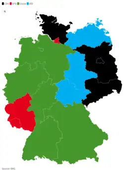 | State | Union | Grüne | SPD | AfD | Linke | FDP | Others |