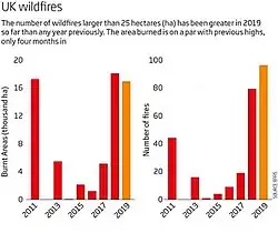 - ^ a b c Vaughn, Adam (23 April 2019). "The UK has already had more wildfires in 2019 than any year on record". New Scientist. Retrieved 31 March 2020.
