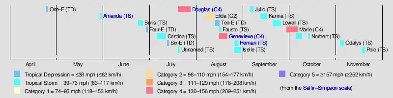 Tropical Storm Hernan (2020)Hurricane Genevieve (2020)Hurricane Douglas (2020)Tropical storms Amanda and CristobalSaffir–Simpson scale