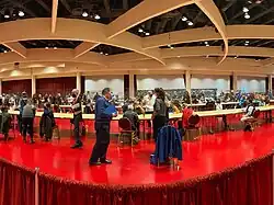 The 2020 Democratic National Convention was scheduled to be held at the Fiserv Forum in Milwaukee, but it was moved to the nearby Wisconsin Center due to the COVID-19 pandemic.[3][4]