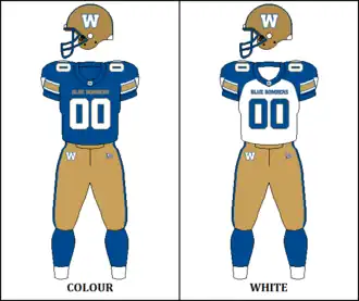 The 2020 CFL National Draft took place on April 30, 2020.[5] By virtue of finishing as Grey Cup champions in the previous season, the Blue Bombers selected last in each round of the eight-round draft, not including any traded picks. The team made one trade, acquiring Grey Cup starting quarterback, Zach Collaros, and a fifth-round pick from the Toronto Argonauts for the Blue Bombers' third-round pick and a conditional pick.[6] The condition of that trade was whether Collaros re-signed with Winnipeg, which he did, meaning that the Blue Bombers sent their first-round selection to the Argonauts.[7] On August 17 however, the season was officially cancelled due to COVID-19.[8]