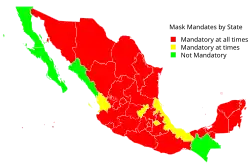 - ^ "Mapa del coronavirus en México 12 de febrero: CDMX, Estado de México y Jalisco pasan a semáforo naranja". infobae (in European Spanish). Infobae. February 12, 2021. Retrieved February 13, 2021.
