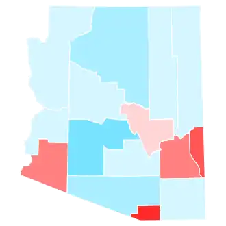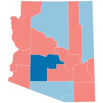 Trump carried Arizona in 2016 by 3.5%, and it was considered a vital battleground in this election. The state's bitterly competitive nature was attributed to the rapid growth of Maricopa County, a traditionally Republican stronghold that holds 61.6% of the state's population.[3][4] Biden became the first Democrat to win Arizona since Bill Clinton in 1996, and only the second since Harry S. Truman in 1948. He is also the first Democrat to win Maricopa County since Truman,[5] with a margin of 2.2%, or 45,109 votes.[6] High turnout among Hispanic/Latino and Native American voters was also seen as vital. Polls of the state throughout the campaign generally showed a Biden lead, albeit by a slender margin. Prior to election day, 11 of the 16 news organizations considered that Arizona was leaning towards Biden; the other five considered it a toss-up. Arizona was the second-closest state in 2020, the only closer state being Georgia, marking the first time since 1948 that the Democratic nominee won both Sun Belt states in the same presidential election (Clinton won each state in separate elections). This was also the first time since 1932 that a non-incumbent Democrat carried Arizona in a presidential election, or that an incumbent Republican lost the state. Arizona weighed in as 4.15 percentage points more Republican than the nation in 2020.
