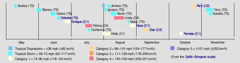 Hurricane Rick (2021)Hurricane PamelaHurricane Olaf (2021)Hurricane Nora (2021)Hurricane Enrique (2021)Tropical Storm Dolores (2021)Saffir–Simpson scale