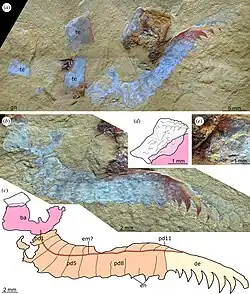 199. ^ Liu, Y.; Edgecombe, G. D.; Schmidt, M.; Bond, A. D.; Melzer, R. R.; Zhai, D.; Mai, H.; Zhang, M.; Hou, X. (2021). "Exites in Cambrian arthropods and homology of arthropod limb branches". Nature Communications. 12 (1) 4619. Bibcode:2021NatCo..12.4619L. doi:10.1038/s41467-021-24918-8. PMC 8324779. PMID 34330912.